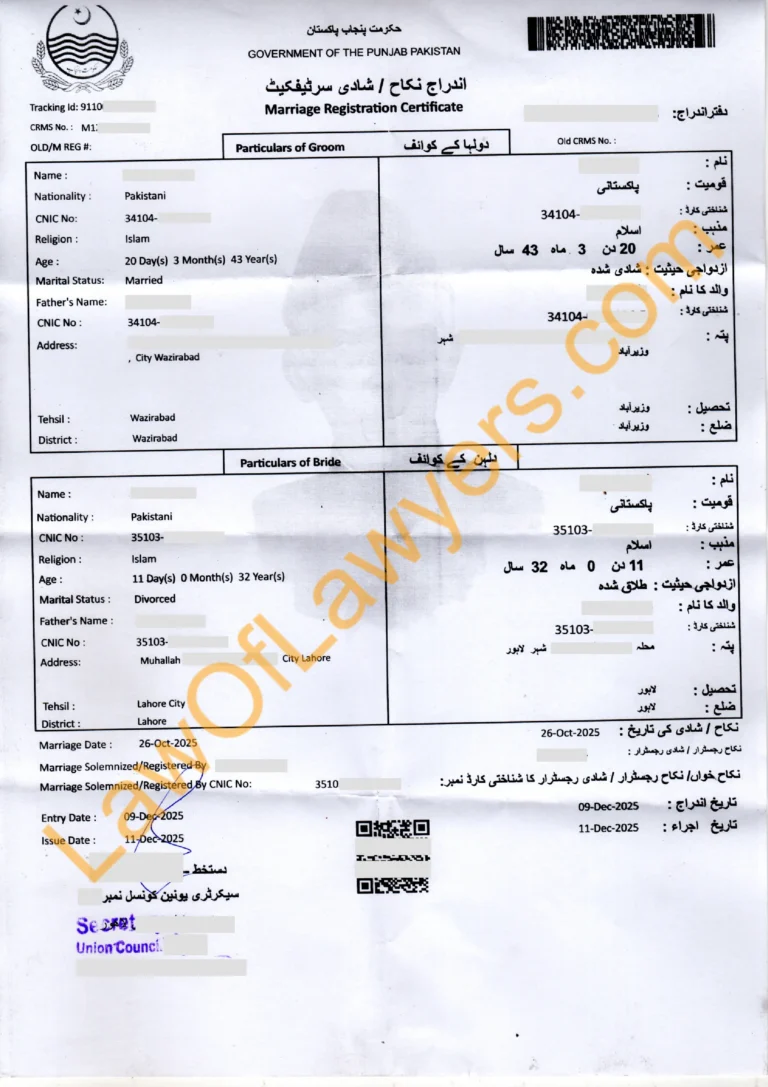 Under the Muslim Family Laws Ordinance 1961, a marriage in Pakistan is legally incomplete until it is registered with the relevant Union Council. While a Nikah Nama (manual contract) is the theological foundation, the NADRA Computerized Marriage Certificate is the only “Primary Evidence” recognized by foreign embassies and civil courts.